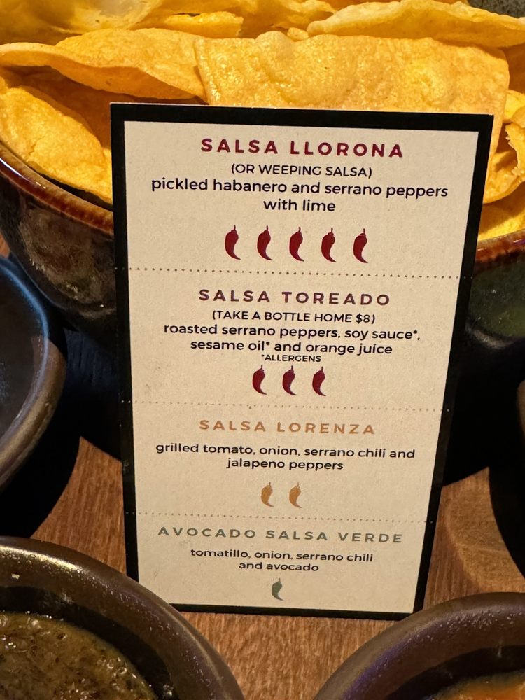 salsa llorona / salsa toreado / salsa lorenza / avocado salsa verde / housemade chips