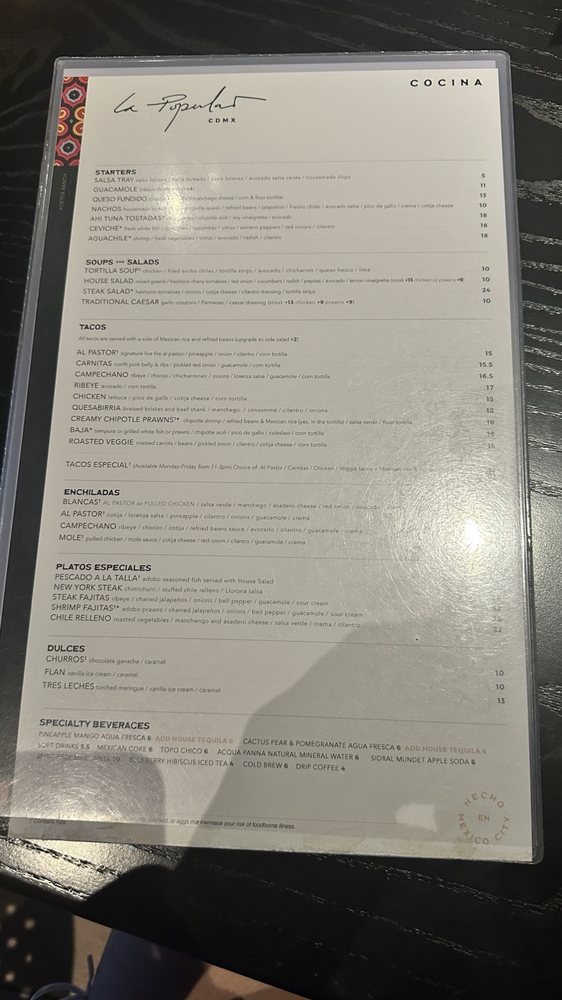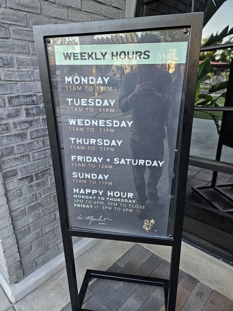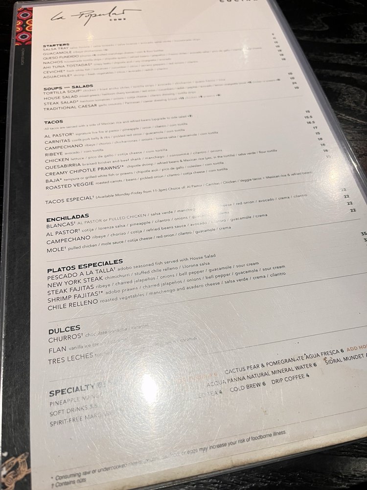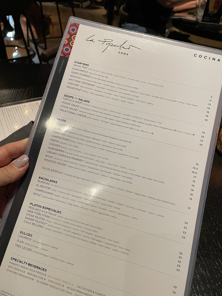 La Popular in Porter Ranch, CA is a hidden gem for authentic Mexican cuisine. Their agua frescas are exceptional, offering refreshing flavors like mango/pineapple and cactus pear/pomegranate. The enchiladas are a must-try, with perfectly cooked fillings and rich, flavorful sauces. The generous portion sizes ensure a satisfying meal. To end on a sweet note, the flan is creamy, smooth, and perfectly sweetened. The ambiance is trendy and balanced, creating a welcoming atmosphere for a night out or special occasion. The service, like Jasmine's attentive and friendly approach, adds to the overall fantastic dining experience. La Popular is a standout spot in Porter Ranch for flavorful dishes, delightful cocktails, and a vibrant ambiance. [p][b]Don't miss out on this culinary gem![/b]